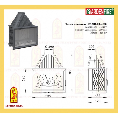 Каминная топка Мета Ardenfire Камилла 800